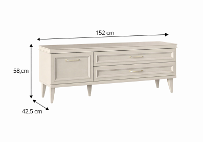 • Комод с 2 распашными фасадами и 4 выдвижными ящиками;