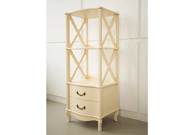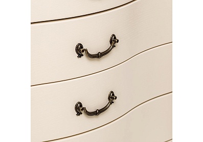 Столешница полукруглой формы выполнена из прочного, износостойкого МДФ, основание — из натуральной древесины. Лакированное глянцевое покрытие смотрится изысканно и благородно, фигурные ножки подчеркивают элегантность изделия. Широкий выдвижной ящик снабжен точечной круглой ручкой, декорированной «под золото».